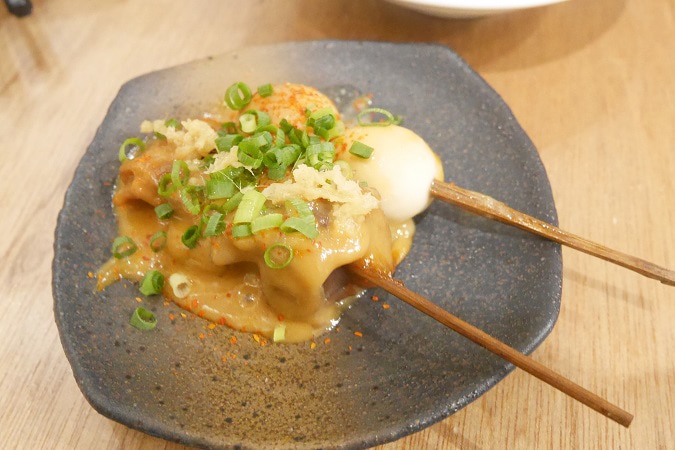 「どてセット(どて焼き+どて玉子) 300円(税込)」は初めてのお味でした!甘めの味噌に一味をふって…最高にお酒が進むやつです!!