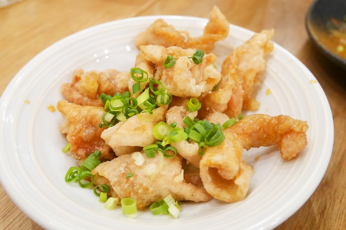 カリカリの食感が楽しく、甘酸っぱいポン酢がよく合う「かりかり鶏皮ポン酢 438円(税込)」もおすすめです!