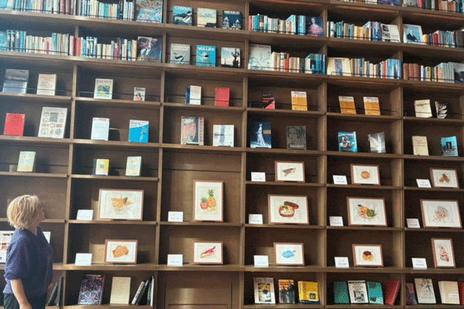 ライトアップされた本棚も美しいですね。