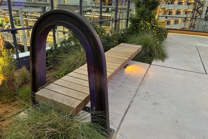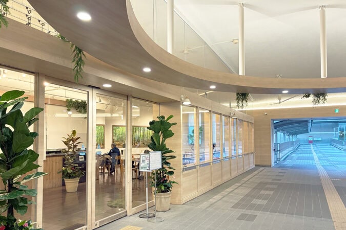枚方市駅北口ロータリーから関西医科大学附属病院へ向かう途中の、立体遊歩道上にあるラウンジです。誰でも利用できる無料の休憩スペースとして2023年にオープンしました。