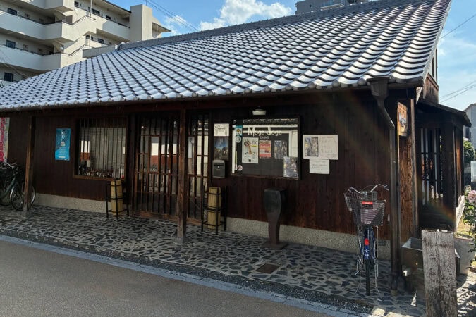 「Moga Joga Dining」の斜め向かいに立つ町屋は、天保3年(1832年)に建築された「旧木南家住宅」。木南家は、江戸時代に庄屋と問屋役人を兼任したという家柄で、楠一族の子孫と考えられています。