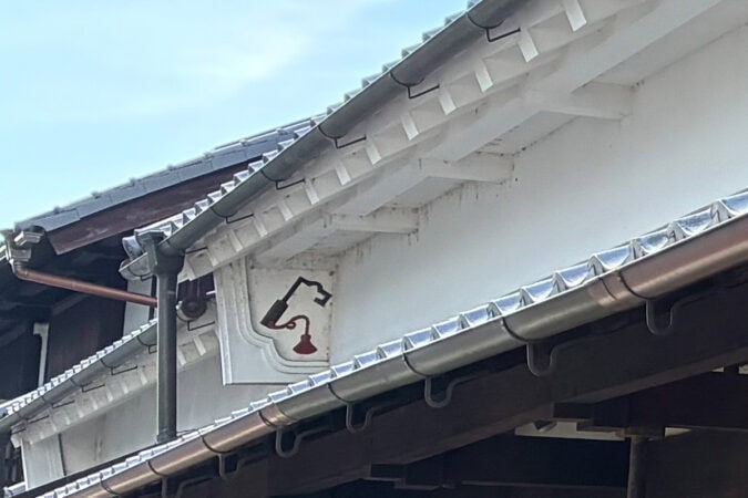 こちらは「枚方宿地区まちなみ景観プレ ート」です。むしこ窓(目の細かい格子を付けた窓)、うだつ(屋根の両端に防火壁)、和瓦、漆喰など枚方宿にふさわしい特徴のある建造物に設置されているので、ぜひ探してみましょう。