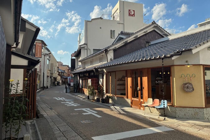 旧京街道にはカフェや雑貨店、レストランなど、古民家を再生したモダンレトロなショップが点在します。外観だけでも絵になりますし、もちろん店内もステキです。