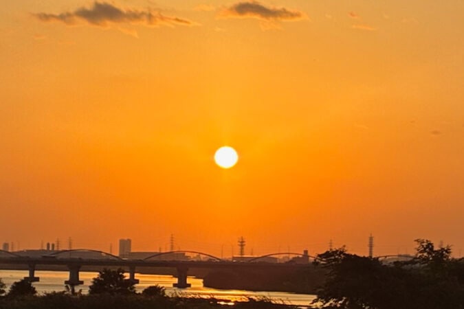 淀川河川公園の枚方エリアはどこからでも夕日が美しく見えますが、とくにおすすめのビュースポットは、枚方エリア最上流の堤防です。日没の1時間前から日没まで、徐々にオレンジみが増していく様子をゆったり楽しめますよ。