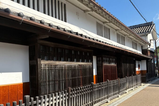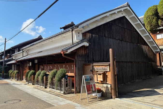 間口が約19mもあり、町屋が多く残る枚方宿の中でも最大級の規模です。むしこ窓と出格子のある表屋造が当時のままに残っており、建築年代が明らかな大型町家として貴重な存在だそうです。国の有形文化財にも指定されています。