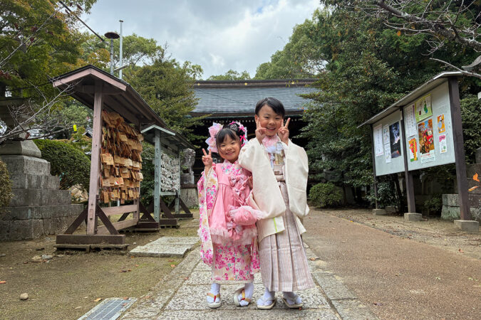 七五三の参拝に訪れたご家族に出会いました。かわいい兄妹は、あさひちゃん3歳(左)、たいようくん5歳(右)です。このたびはおめでとうございます!