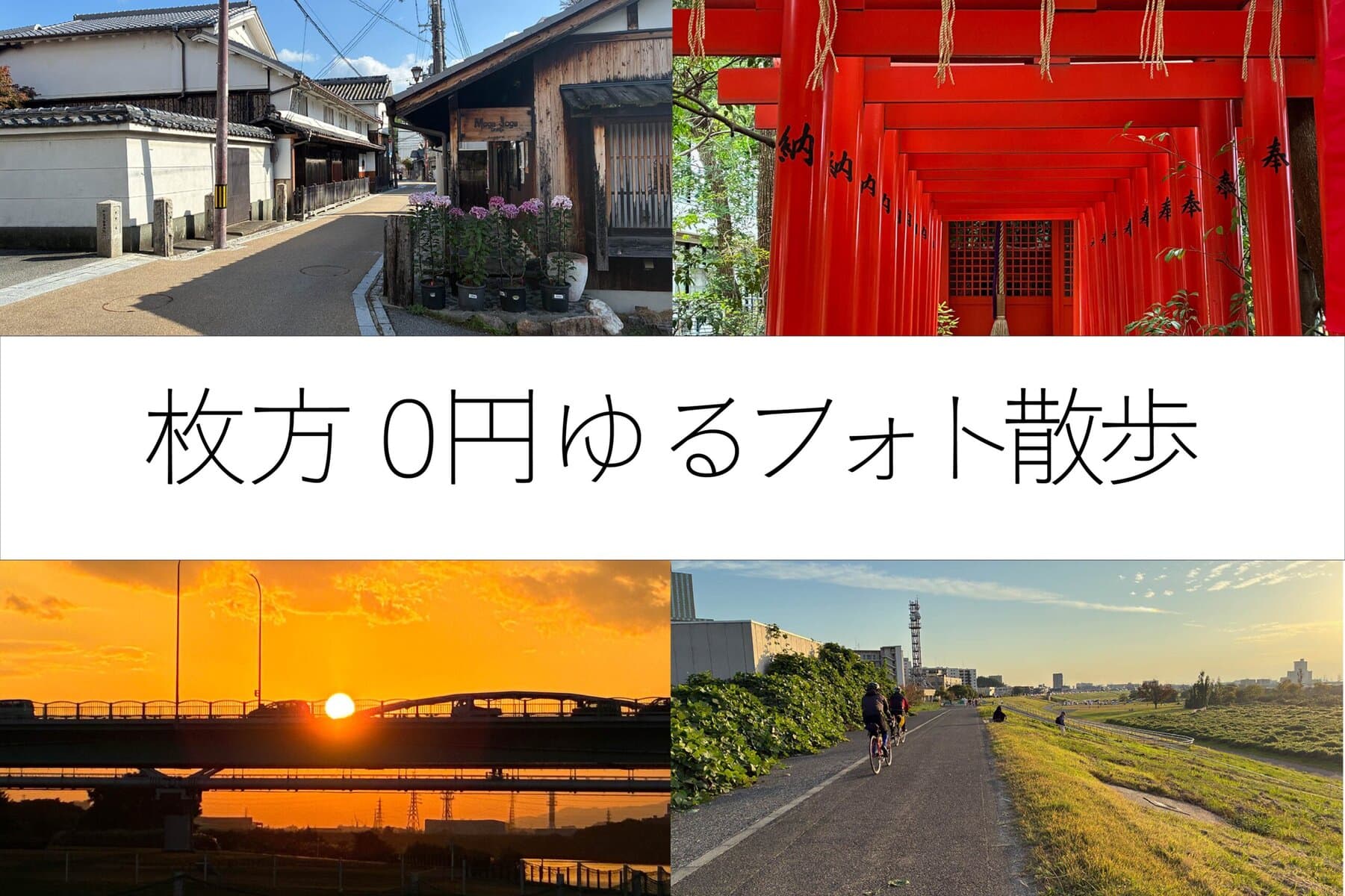芝生の上でホッ、古い町並みにキュン、夕焼けにジーン。ありのままを切り取るだけで味が出る。それが枚方さんぽの魅力です。次のお休みは、お財布を気にせず、枚方でゆるっとチル旅してみませんか?