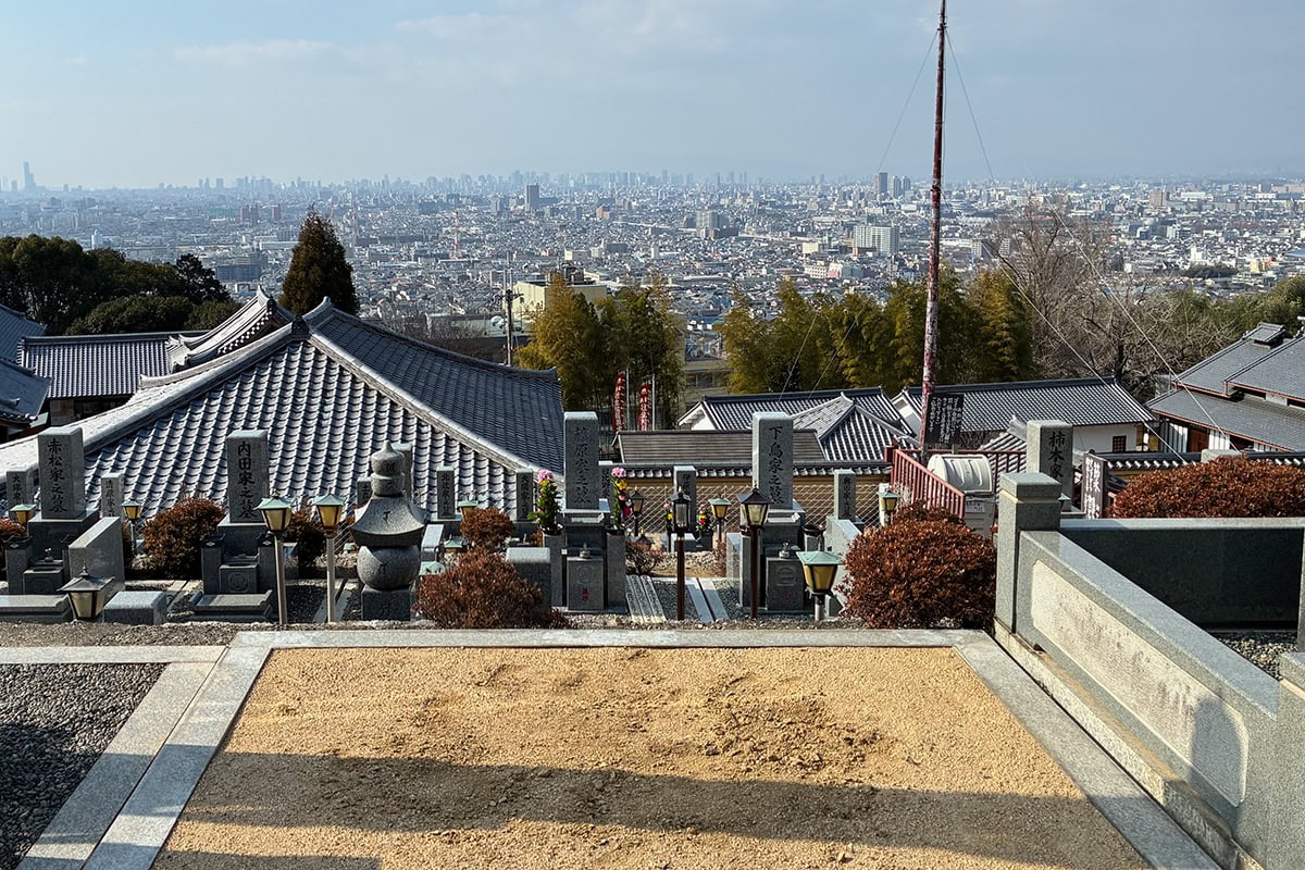 往生院六萬寺は、平安時代後期に開かれた、極楽往生を願う信仰の寺です。南北朝時代には楠木正行の本陣となった歴史もあります。とにかく眺望が素晴らしく、あべのハルカスも淡路島も見えました。