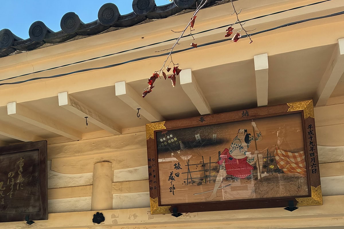 絵馬殿には、2020年に亡くなった四代目・坂田藤十郎さんが奉納した絵馬が飾られています。藤十郎さんは上方歌舞伎の立役者として活躍し、江戸時代に途絶えた上方歌舞伎の大名跡を2005年に復活させ、重要無形文化財保持者(人間国宝)にも認定された人物です。虚構と現実は違えど、芸に人生を捧げた姿は映画の喜久雄と静かに重なります。