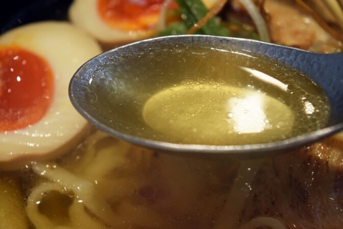 スープは、魚介の旨味と昆布の旨味が合わさった絶品の塩スープです。