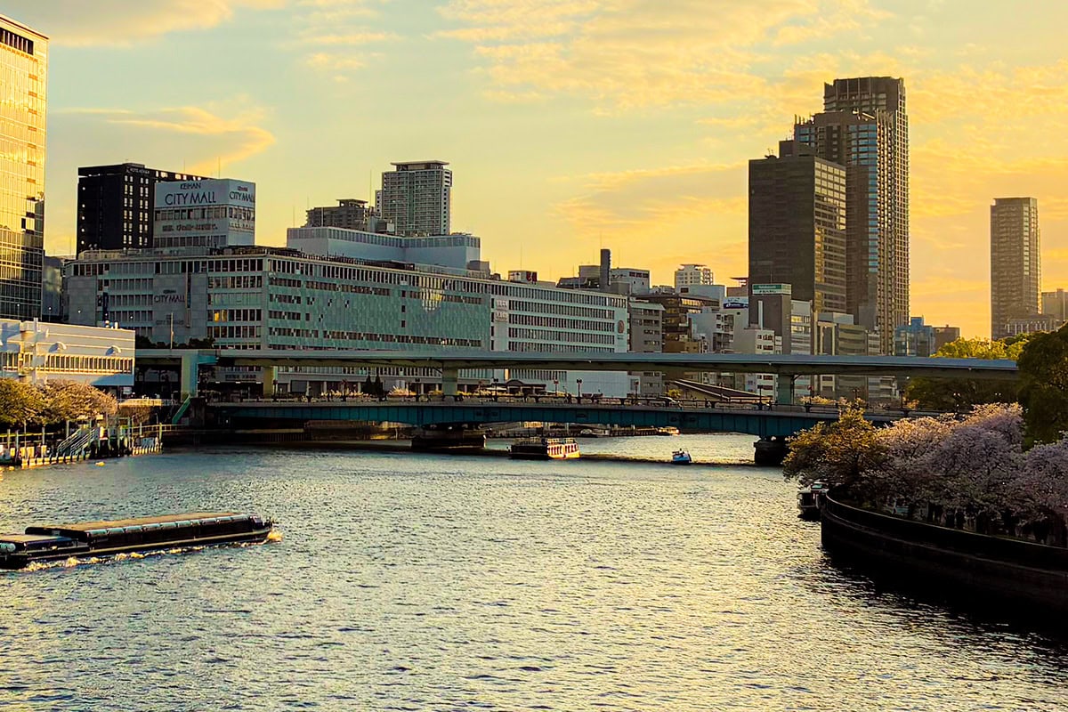 昼・夕・夜で別世界!水辺の高層ビル群を望む「天満橋」