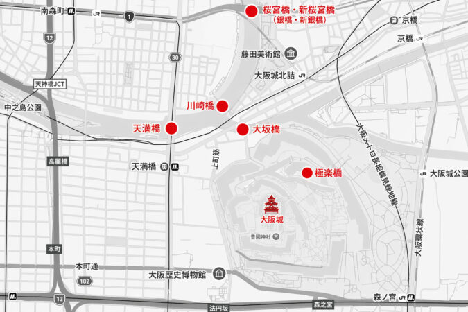 極楽橋 → 大坂橋 → 川崎橋 → 桜宮橋 → 天満橋