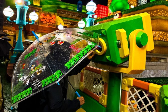 マリオの透明傘(写真中央・税込1,500円)は現地のショップで購入しましたよ。