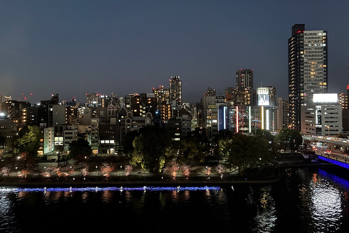 見えるランドマークも多く、水都大阪らしい美しさもあります。