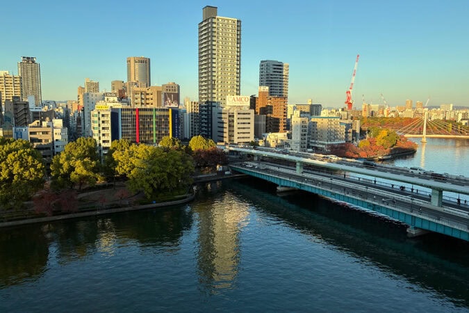 川、橋、ビル、緑。大阪の川沿いには、日常の延長にあるとは思えない景色が、さりげなく広がっています。