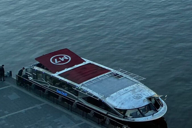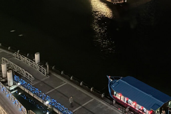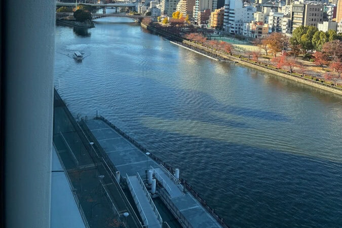 8階という低めの展望だからこそ、行き交う船をぐっと近くに感じられるのが魅力。まるで川の上にせり出すような没入感があり、この距離感こそが最大の強みです。
