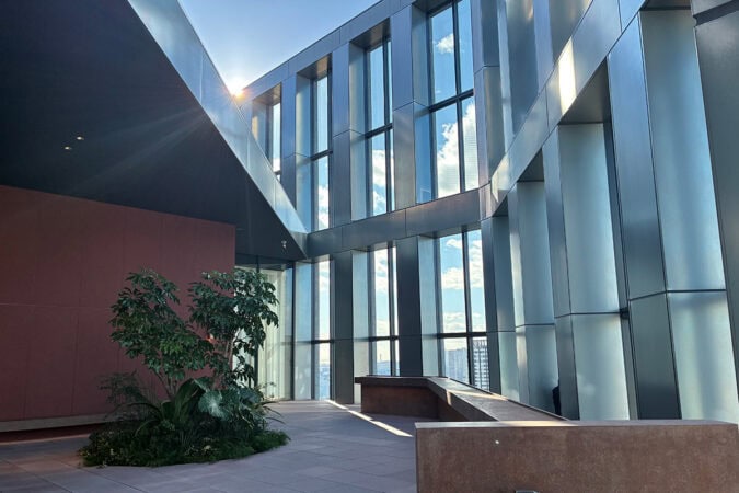 2024年にオープンした大阪堂島浜タワー。下層階はオフィス、上層階はホテルになっています。