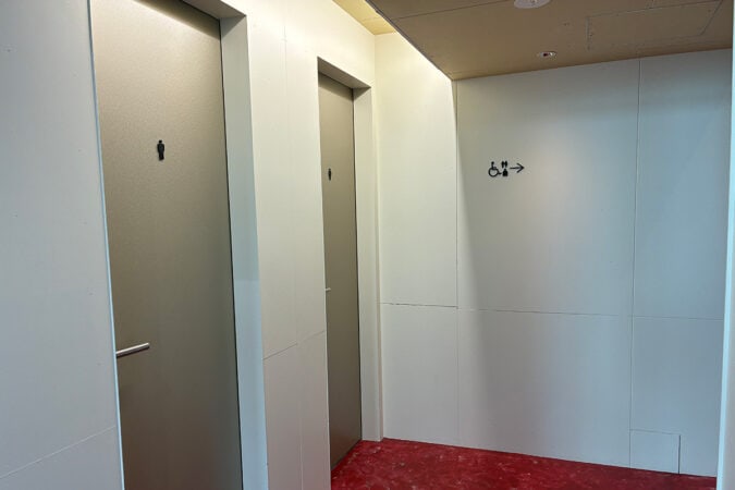 女子トイレ(写真奥)は、個室1つだけでした(手前は男子トイレ)。スペースもコンパクトで、便座除菌クリーナーもなく、シンプルな印象です。