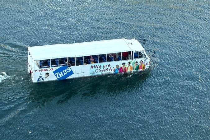 水陸両用のユニークなバスも走行します。ラッピングが素敵ですね。