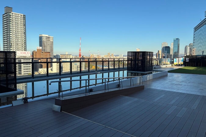堂島川に並行するこの細長い展望テラスは、2つのメインテラスをつなぐ通路でもあります。