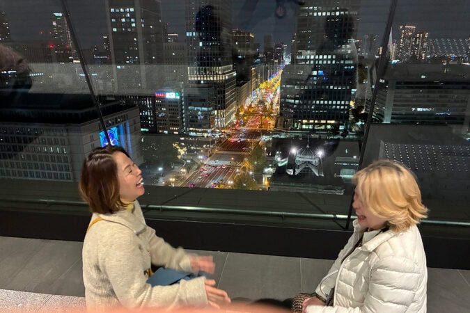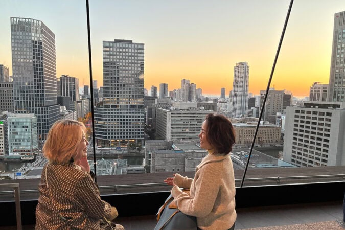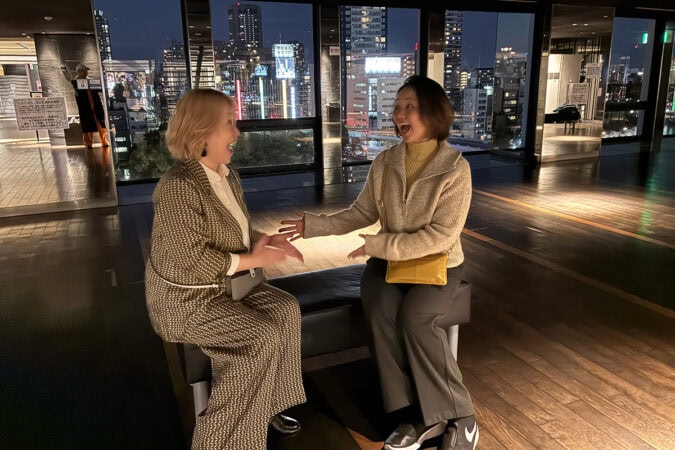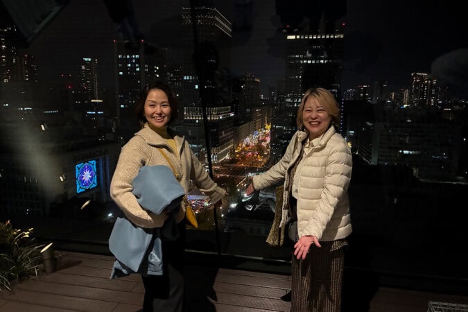 ナビゲーターは、元旅行雑誌ライター“おかん”(左)です。40年来の友達“ちっちママ”(右)を連れて、展望エリアの居心地を本気でチェックしてきました!