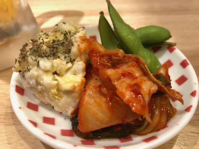 ポテトサラダ、白菜キムチ、枝豆付き!