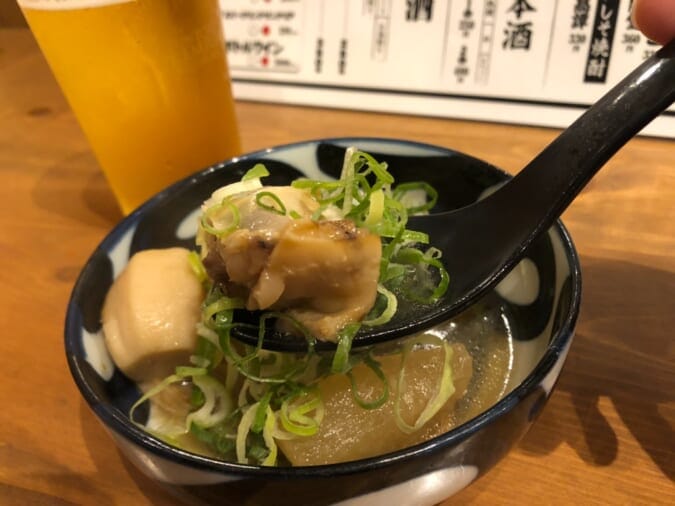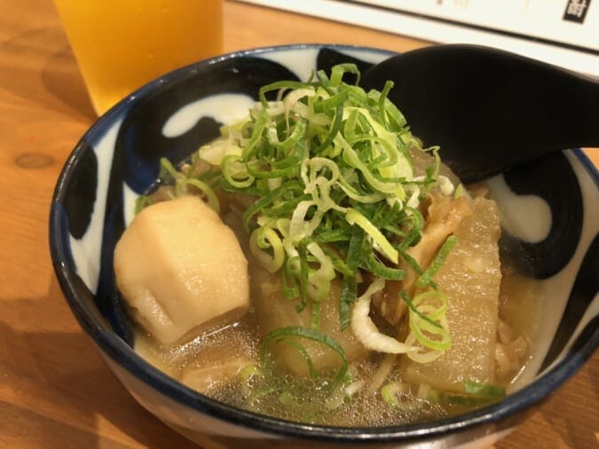 関西風の薄味のダシでじっくりと煮込まれた「名物!!和牛すじ 250円(税抜)」