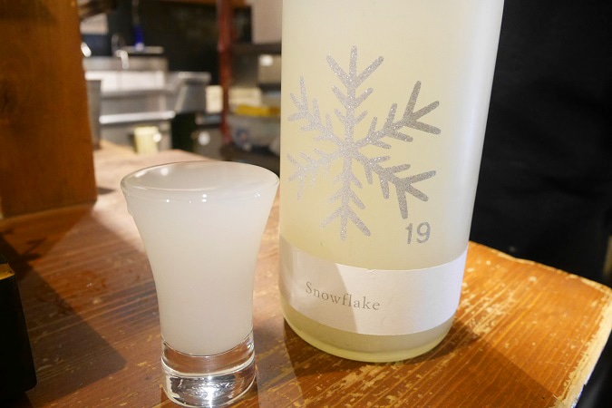 シェイカーを使いシェイクすることで、空気を含ませつつ急冷された日本酒はすっきりとした飲み口に仕上がるんだとか!”さわらのおすすめ”のお酒は日によって決まっているそうで、この日は「黒松白鹿(兵庫)」でした。